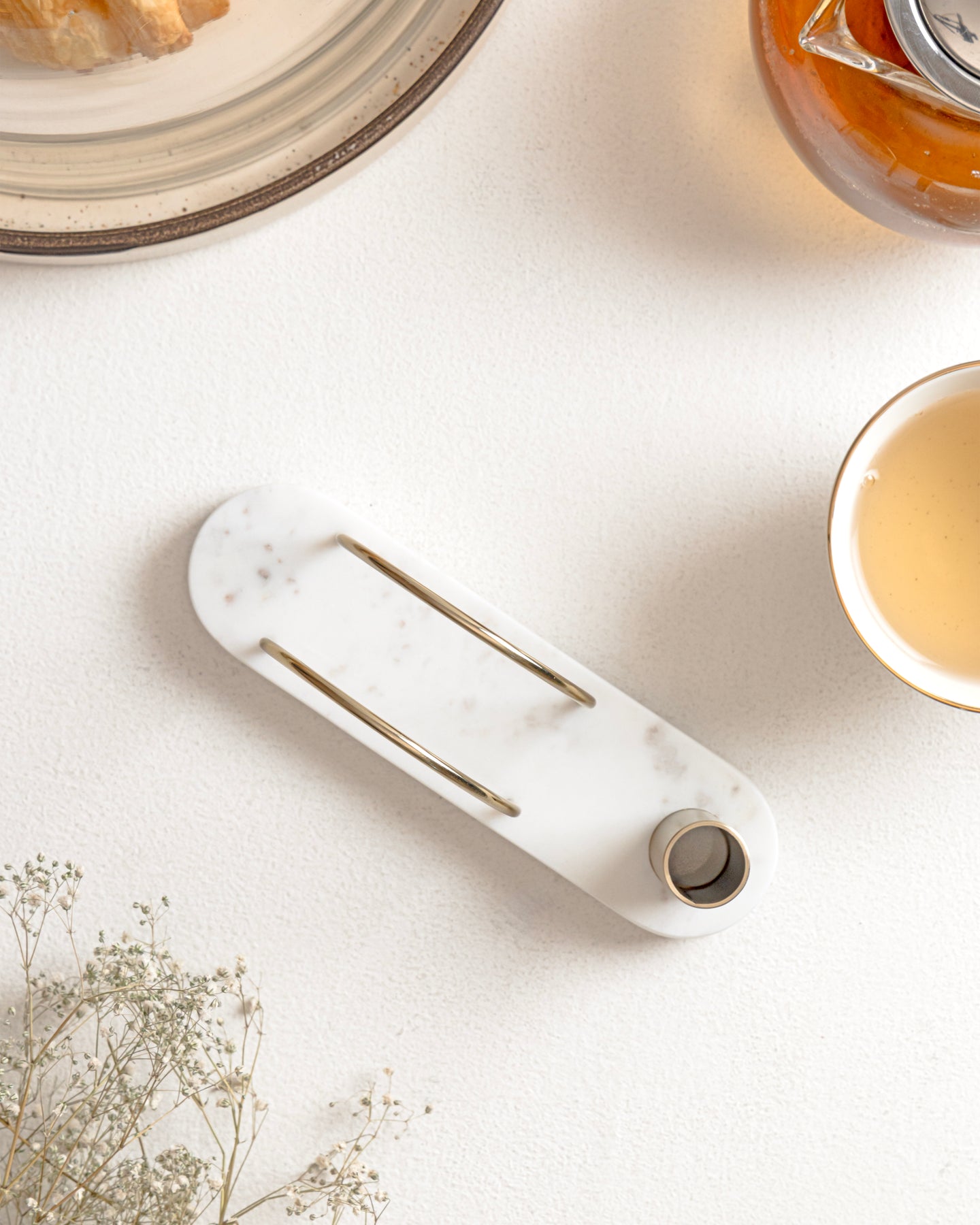 Add a refined touch to your table décor with the Marble Napkin Stand. Beautifully crafted from premium white marble and complemented with elegant brass detailing, this piece brings a subtle blend of sophistication and functionality to any setting.