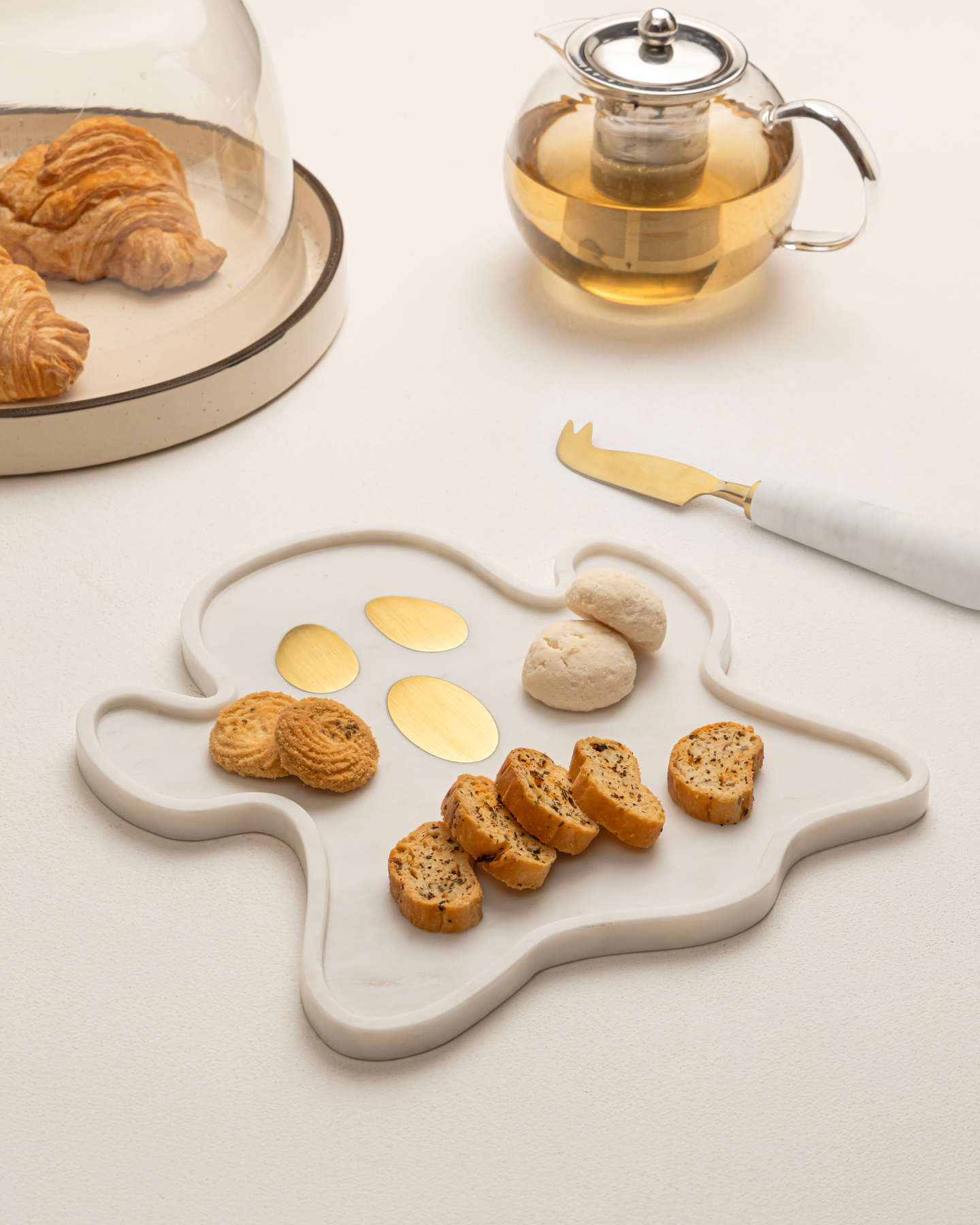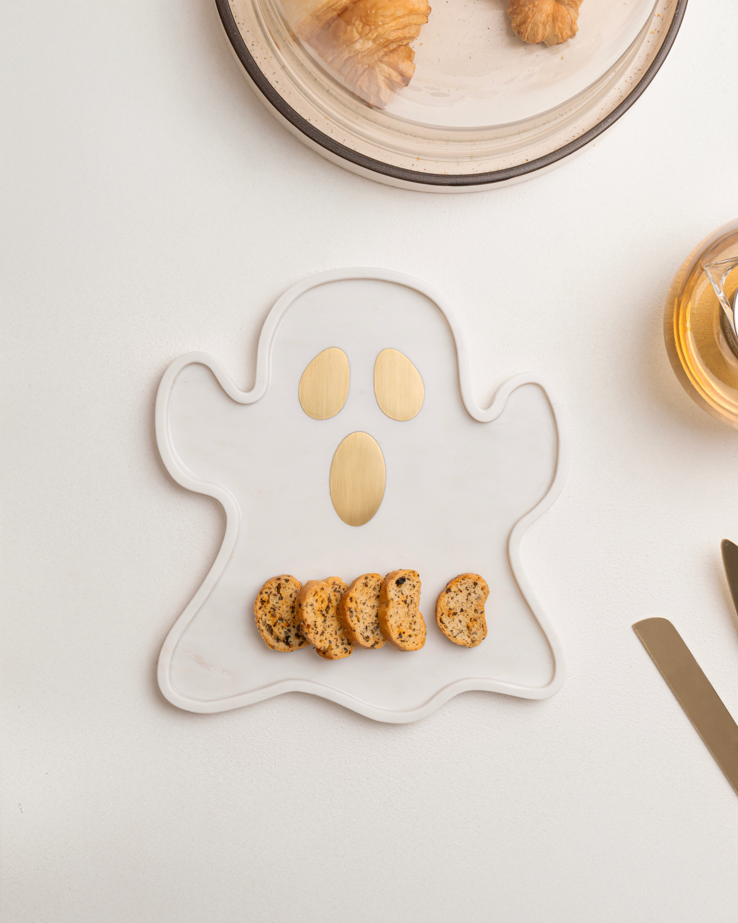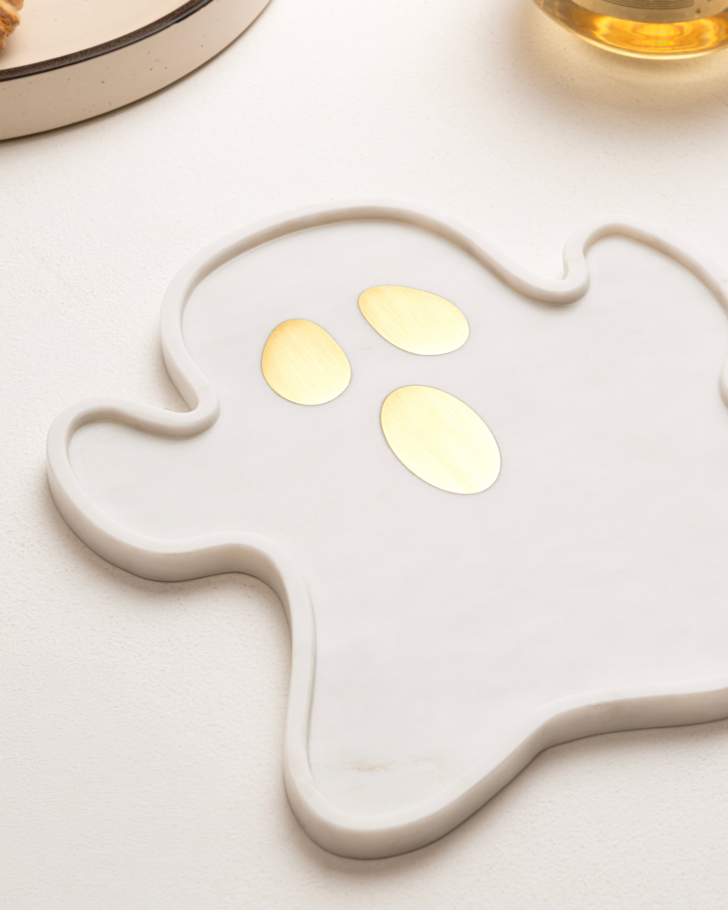 Bring a fun and modern festive touch to your table with the Marble Platter – Ghost. Crafted from premium marble and finished with subtle brass detailing, this uniquely shaped platter adds character while maintaining a clean, elegant look.